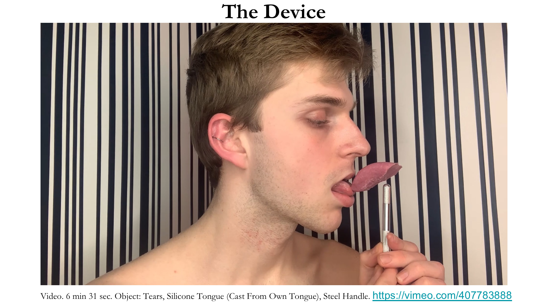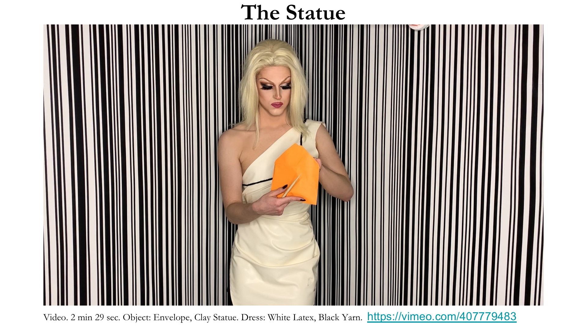 After lauding and then recanting the value of graphite-rendered gemstones and precious metals, the aware self carves a pair of earrings out of the drawing in another performance. Though the drawing represents fundamentally valuable materials, it has no worth until it becomes a wearable commodity. Then, the earrings are burned in an orange toaster—their value destroyed by the contracting economy due to the COVID-19 pandemic. Value is constructed, dependent, and volatile.